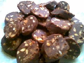 في إناء تمزج جميع العناصر مع بعضها ويصنع منها قضيب اسطواني ويلف في البلاستيك الغذائي ويدخل للثلاجة ليبرد