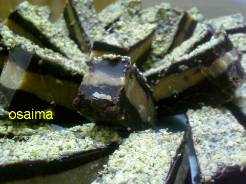 نذوب أصابع الشوكولا مع 50 غرام الزبدة وتوضع على الوجه مع رشه بالفستق المجروش