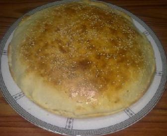 نفرد عجينه ثانية ونضعها فوق الأولى وندهن بالجبن ونرش عليها كما الأولى……. وهكذا مع باقي الطبقات إلى آخر طبقة وهذه الأخيرة تكون سادة فقط تدهن بحليب سائل ويرش عليها حسب الرغبة (سمسم – سماق – حبة سودا)