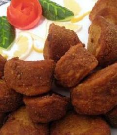 تقلى القطع بالزيت على نار متوسطة حتى تنضج البطاطا و يصبح لونها ذهبي , توضع على ورق ماص ثم يقدم الطبق ساخناً