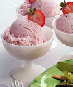 يوضع في الفريزر حتى يجمد ويقدم مزينا بحبة فراولة