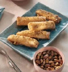 يُرشّ الفستق المطحون على الوجه وتُقدّم زنود الست بعد أن تبرد قليلاً