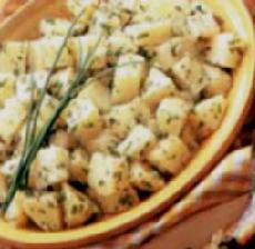 يضاف الزيت والثوم على وعاء البطاطس تقدم فورا أو تترك في الثلاجة