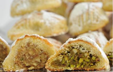 يُخلط الجوز المفروم أو الفستق المفروم بالسكر وماء الورد أو الزهر