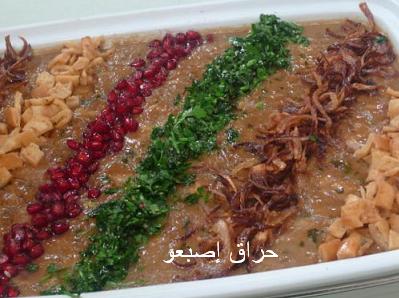 زيني العدس بالخبز المقلي، الثوم والكزبرة، البصل المقلي وحب الرمان