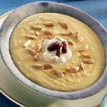 يُسكب المزيج في أطباق للتقديم ويُترك جانباً حتى يبرد