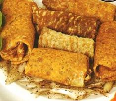 يقطع الخبز إلى مربعات ويوضع مقدار ملعقة كبيرة من الدجاج في كل شريحة خبز وتلف على شكل أصابع