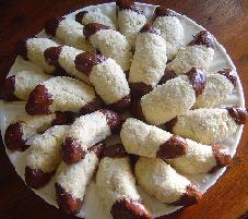 تعمل من العجين أصابع على شكل هلال تفند في خليط السكر و جوز الهند
