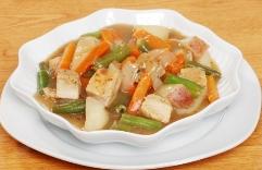 نضيف البازيلاء والماء والملح والفلفل والدجاج ونغطي القدر جزئياً ونتركه يغلي ببطء لمدة 20 دقيقة