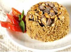 يسلق الباذنجان المحمر مع البهار والملح ويطبخ به الأرز ثم تصف قطع الباذنجان مع اللحم والأرز ضمن إناء عميق وتقلب في طبق التقديم وتزين بالصنوبر .