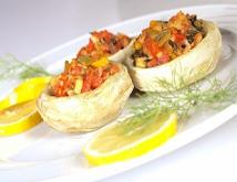 يدخل الخرشوف الفرن على درجة حرارة متوسطة مدة 10-15 دقيقة ثم يخرج ويقدم