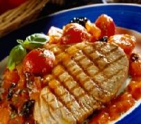 رصي قطع السمك على الشواية الكهربائية مع البندورة