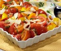 ثم ضعيها في طبق التقديم، ثم أضيفي فوقها حلقات الطماطم والخيار