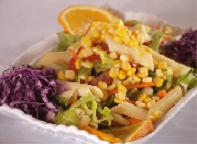 تسكب السلطة في طبق التقديم وتزين بشرائح البرتقال