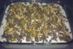 يصف اليقطين في صحن بايركس ثم نضع عليه اللبن ثم اللحمة ويزين باللوز والصنوبر