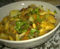 نضع الخضار المقطعة ونقلب ونضيف بعض الماء يغمر تقريباً الخليط وحبات الفلفل الحار ويغطى حتى ينضج ويرش عليه البقدونس المفروم