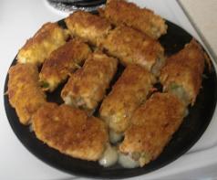 ثم تغمس القطع بالطحين ثم بالبيض ثم بالبقسماط