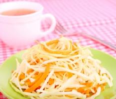 ثم يتم خلط الجزر و شرائح الملفوف و يضاف إليها عصير الليمون و السكر و المايونيز