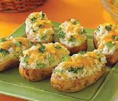 تقطع حبات البطاطس إلى أنصاف وتفرغ من الداخل مع الإبقاء على جدار بسماكة 5 سم تقريبا