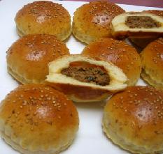 نقطع العجينة دوائر نضع حبة من اللحم المفروم المطهوة و قطعة جبن موزريلا و قليل من المشروم المقلى قليلا في الزيت و قطعة طماطم و نضع عجينة ثانية فوقها و هكذا حتى ينتهي التحضير مع مراعاة غلق الجوانب بقليل من صفار البيض و الماء