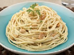 يرش عليها الصنوبر وتزين بالبقدونس المفروم وتقدم دافئة