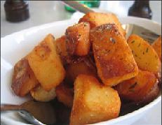 يضاف البقدونس و الثوم إلى البطاطس ثم يصب فوقها الصلصة