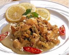 تضاف الكريمة و يتابع الطهي بدون غطاء مدة 5 دقائق أُخرى أو حتى استواء السمك