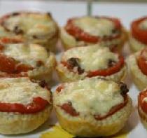 ضعيها في قوالب المافن وضعي عليها البندورة المحمرة