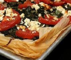 اخبزي البيتزا في الفرن لمدة 20 دقيقة أو إلي أن تنضج البيتزا ويميل جبن الفيتا للون البني قدمي هذه البيتزا ساخنة مع سلطة خضراء بسيطة بعصير الليمون