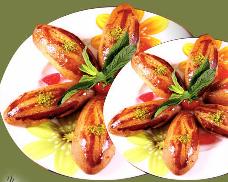 ندهن صينية الفرن بالقليل من الزيت ثم نرص فيها كريات الشكر باره، ثم ندهن الكريات بصفار البيض، ونضيف حبة لوز وحبة بندق على كل قطعة مع الضغط قليلاً
