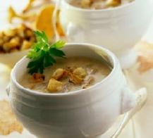 أضيفي مرق الدجاج والبطاطس وأوراق الريحان والملح والفلفل الأسود واتركي الخليط يغلي لمدة 30 دقيقة ، ثم ارفعي الخليط من النار وضعيه في الخلاط واخلطي لمدة دقائق حتى تصبح الشوربة ناعمة