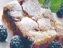 أفرغي المزيج فوق العجين وحبات التوت وضعي الصفيحة في الفرن لمدة 30 دقيقة
