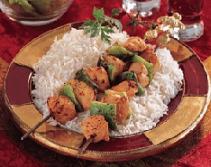 يمكن وضع مكعبات البصل والفلفل الأخضر مع قطع الدجاج في الأسياخ للشوي