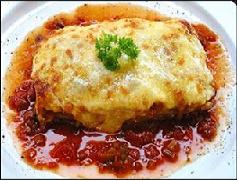 يوضع فوقها نصف كمية حشو اللحم وثلث كمية الصلصة ثم تنثر بعض من جبن الموتزاريلا و جبن البارميزان