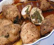 ضعي قطعة فيليه أمامك وضعي على طرفها مقدار مناسب من الحشو. لفي الفيليه جيدا على الحشو وثبتي بعود خشبي