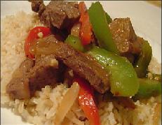 يضاف اللحم ويتابع القلي السريع حتى ينضج اللحم