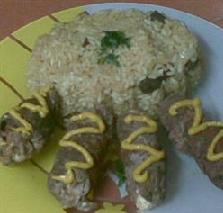 توضع لفائف اللحم في طبق التقديم ويسكب عليه الصوص ويقدم