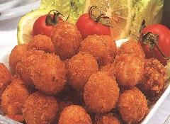 يسخن الزيت جيدا وتلقى فيه كرات الطون ثم تقدم مع شرائح الليمون الحامض والطماطم الصغيرة وأوراق الخس