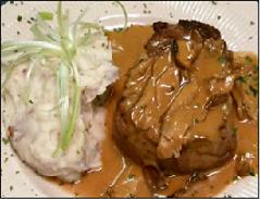تُوضع شرائح اللحم في طبق التقديم وتُغطى بالصلصة و تُقدم مع الخضروات المسلوقة و تُزين بالبقدونس المفروم