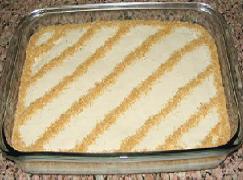 تخلط المقادير مع بعض وتوضع على وجه الطبقة الأولى