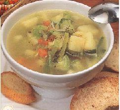 تسخن المرقة ويضاف إليها الخضر وتترك على النار حتى تستوي