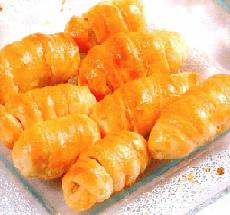 تدهن كل واحدة بالبيض المخفوق وتدخل إلى فرن محمى مسبقا على درجة 180 م مدة 15 دقيقة أو حتى تتحمر تقدم ساخنة