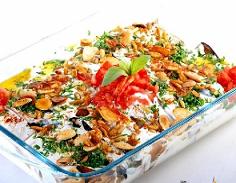 فتة الباذنجان باللبن (وصفة نباتية)