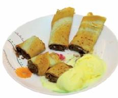 بعد أن تبرد قطع الكريب، تدهن بالشوكولا وتلفّ على شكل اسطواني