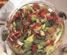 تخلط هذه الصلصة مع الخضرة ومكعبات الخبز قبل بضع دقائق من موعد التقديم