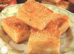 تقطع جبنة العكاوي والمجدولة إلى شرائح وتنقع في الماء قليلا لتخفيف ملحها ثم تدهن صينية الخبز بقليل من الزبدة أو الزيت