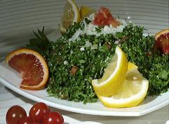يوضع البقدونس مع البصل الناعم و البرغل و الملح وزيت الزيتون وعصير الليمون و تحرك ثم تسكب وتزين