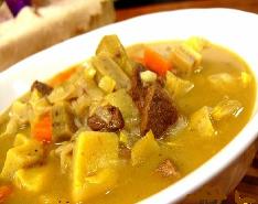 نضيف مرقة اللحمة ثم نملح ونبهر ونضيف قطع الأرضي شوكي وتترك للغليان على نار هادئة مدة 10- 15 دقيقة