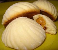 ثم توضع الخلطة على الطحين والنشاء وتخلط جيدا حتى تصبح عجينة متماسكة ولينة