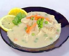 يخلط الدجاج مع الجزر و البازلاء و الفطر المقطع وتسكب وتقدم ساخنة مع الأرز الأبيض